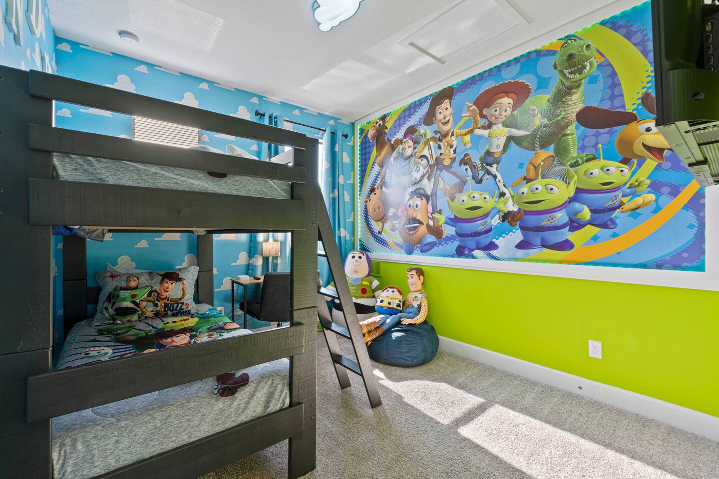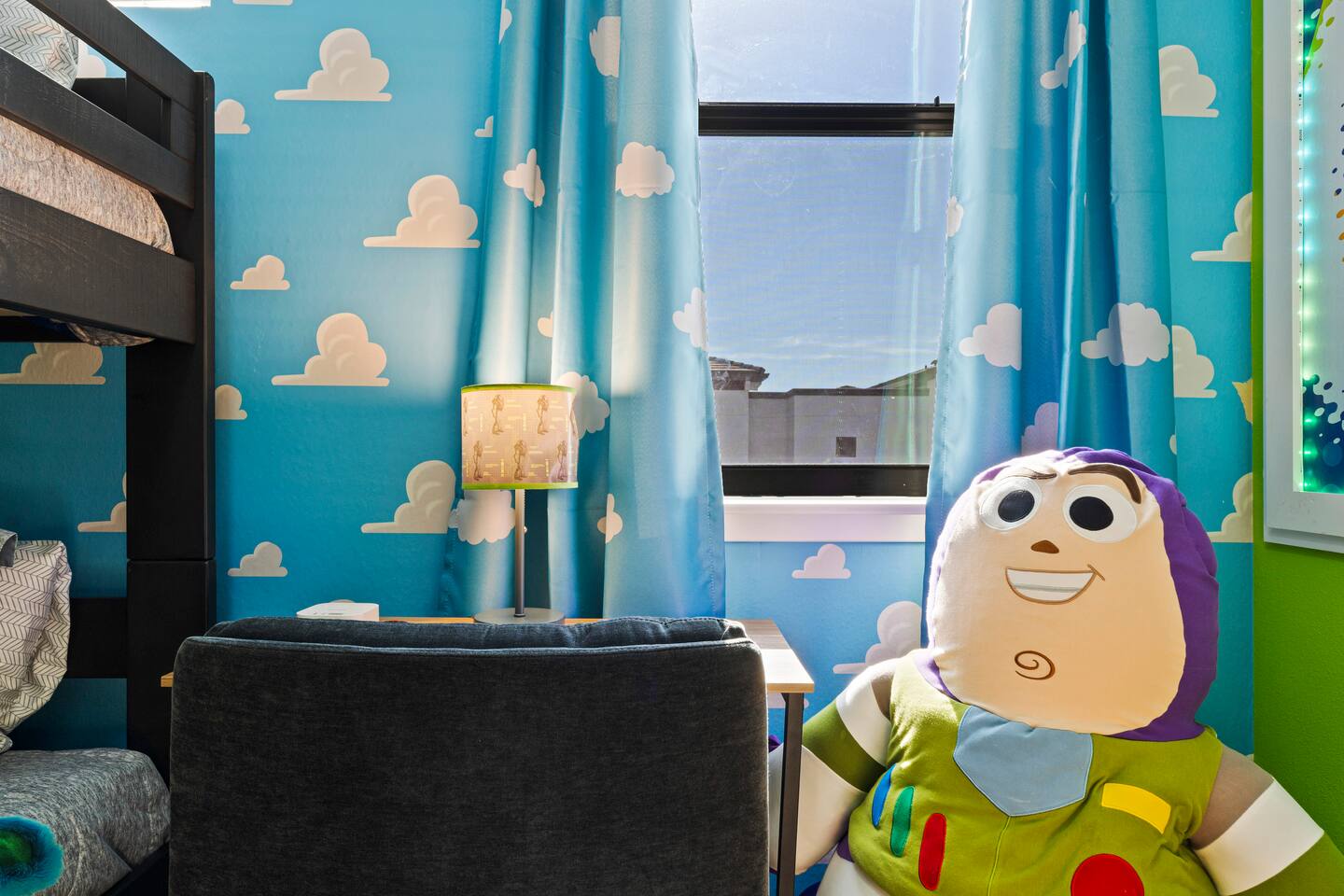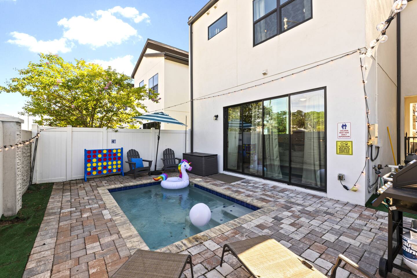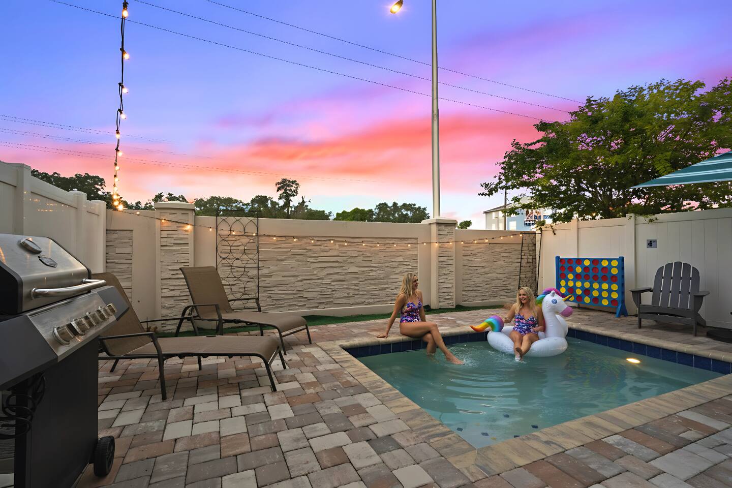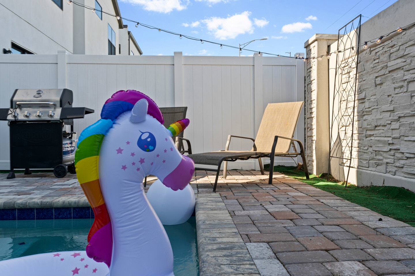 Your easy home base for park days and pool nights in a safe, gated community near Celebration. Short drive to all four Walt Disney World parks (Magic Kingdom, EPCOT, Hollywood Studios, Animal Kingdom) with quick access to Universal and SeaWorld. Inside: modern game/theater area, smart TVs in every bedroom, and fun Toy Story & Princess rooms. Outside: private plunge pool (not heated) on a west-facing patio for sunsets. Fast Wi-Fi for WFH. BBQ is available. Enjoy the resort style clubhouse with large outdoor pool, hot tub, fitness room, and billiards!