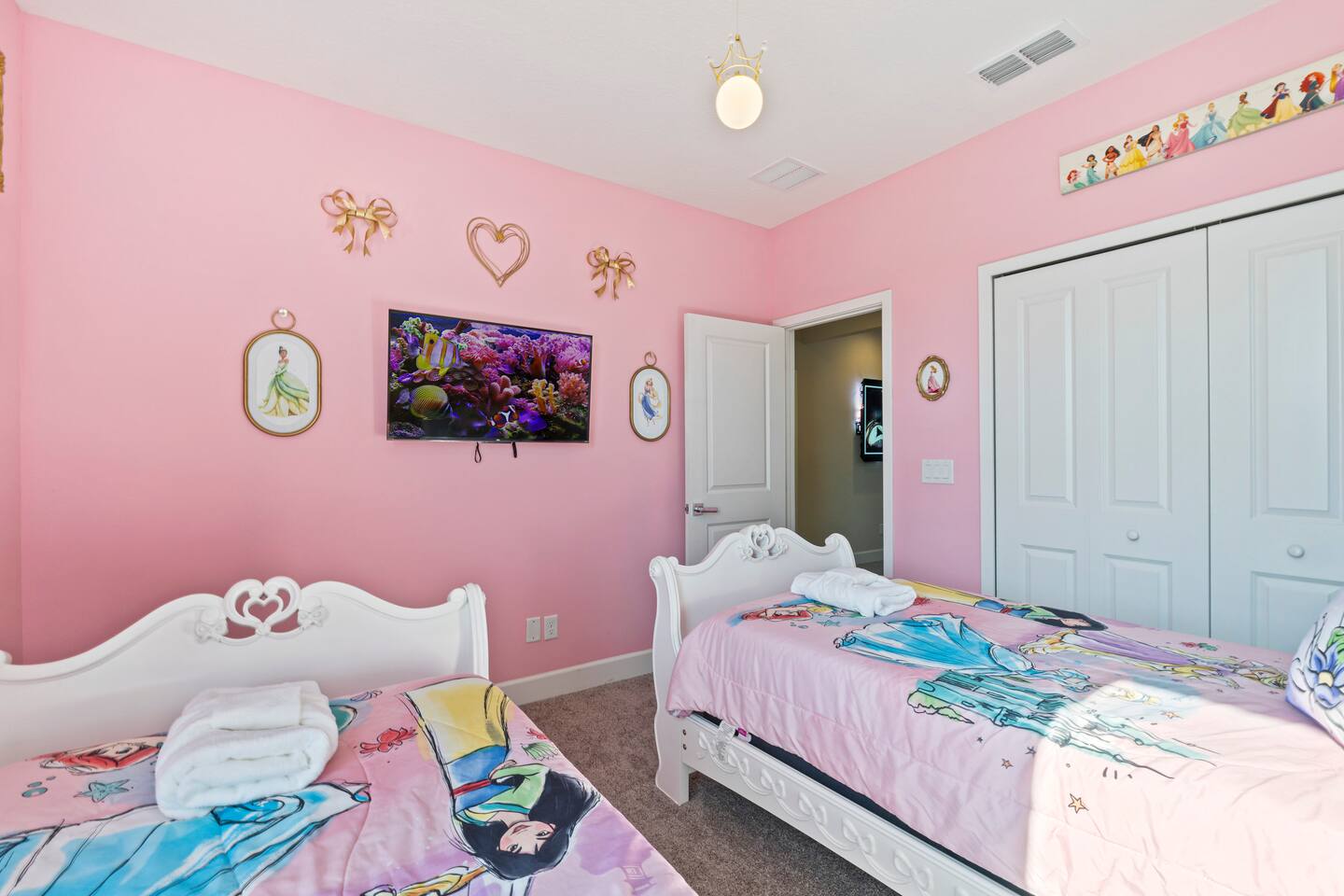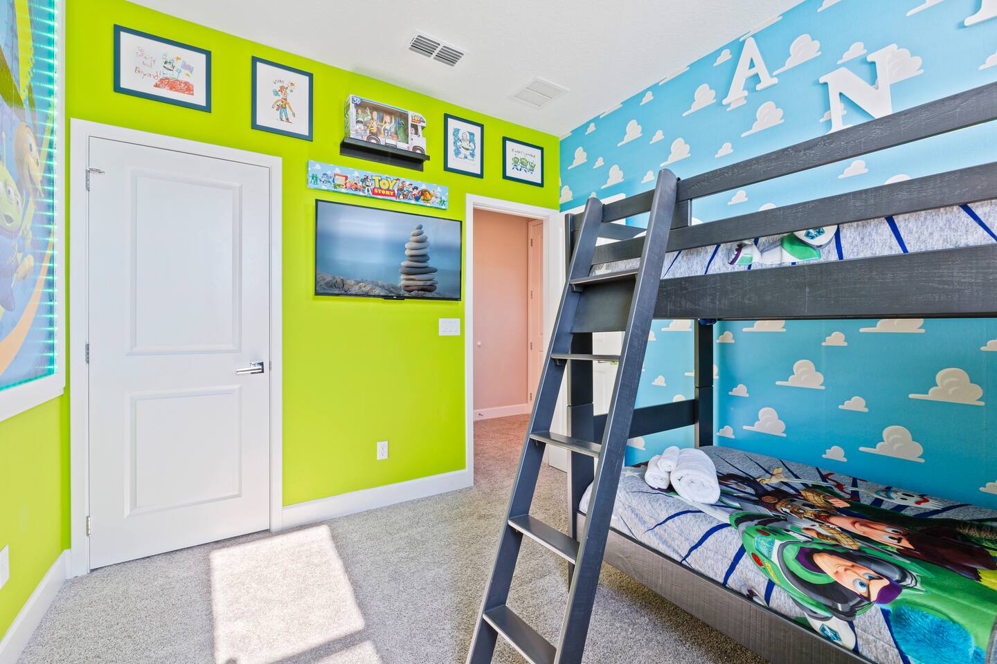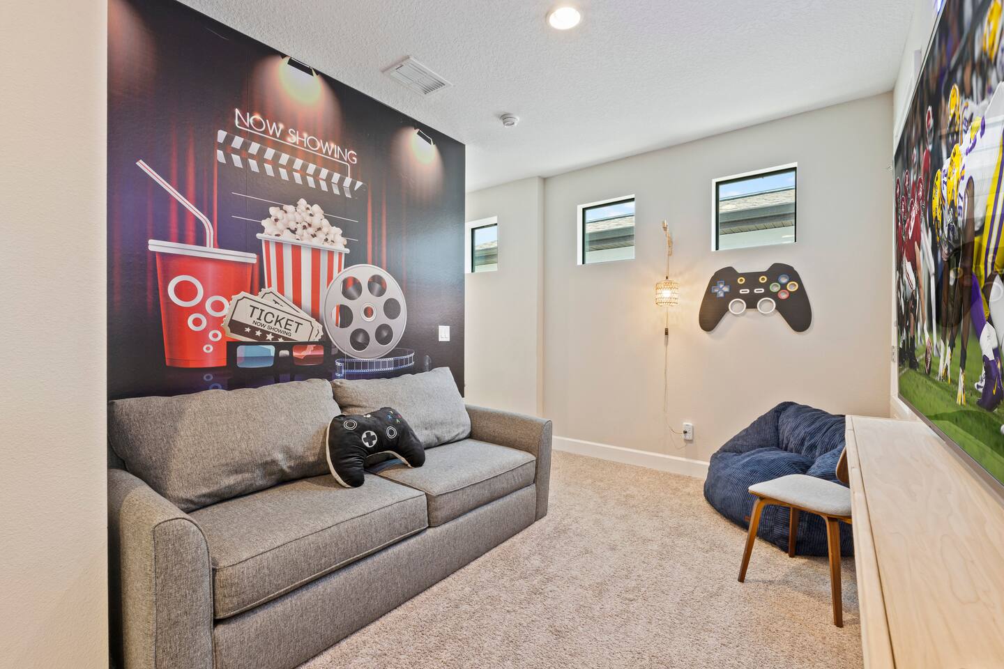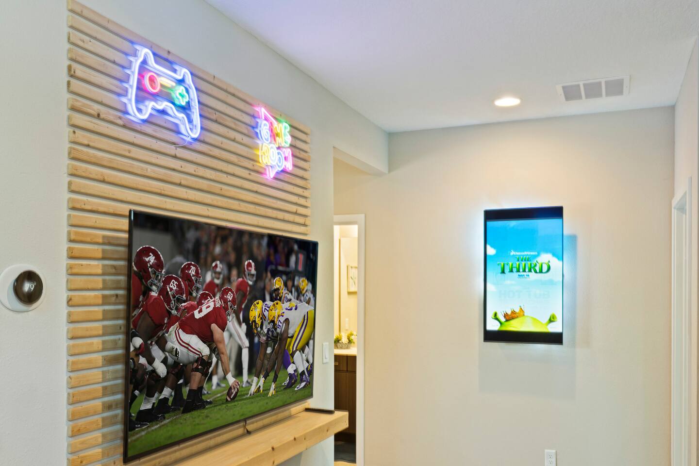 Your easy home base for park days and pool nights in a safe, gated community near Celebration. Short drive to all four Walt Disney World parks (Magic Kingdom, EPCOT, Hollywood Studios, Animal Kingdom) with quick access to Universal and SeaWorld. Inside: modern game/theater area, smart TVs in every bedroom, and fun Toy Story & Princess rooms. Outside: private plunge pool (not heated) on a west-facing patio for sunsets. Fast Wi-Fi for WFH. BBQ is available. Enjoy the resort style clubhouse with large outdoor pool, hot tub, fitness room, and billiards!