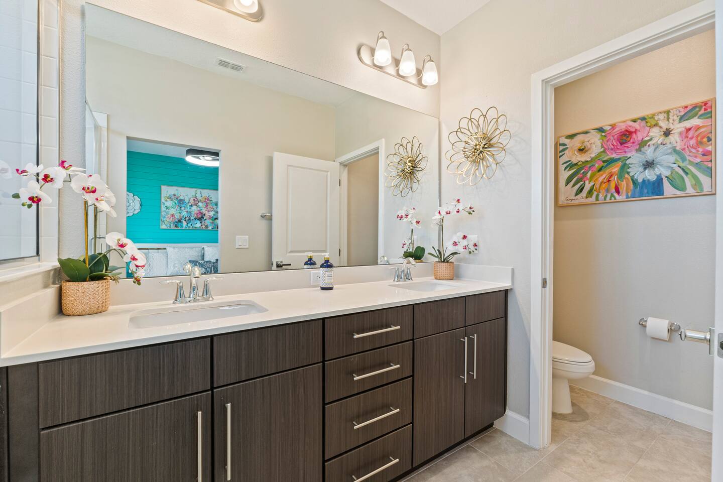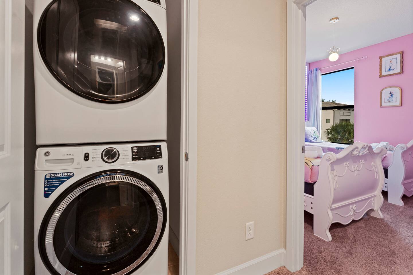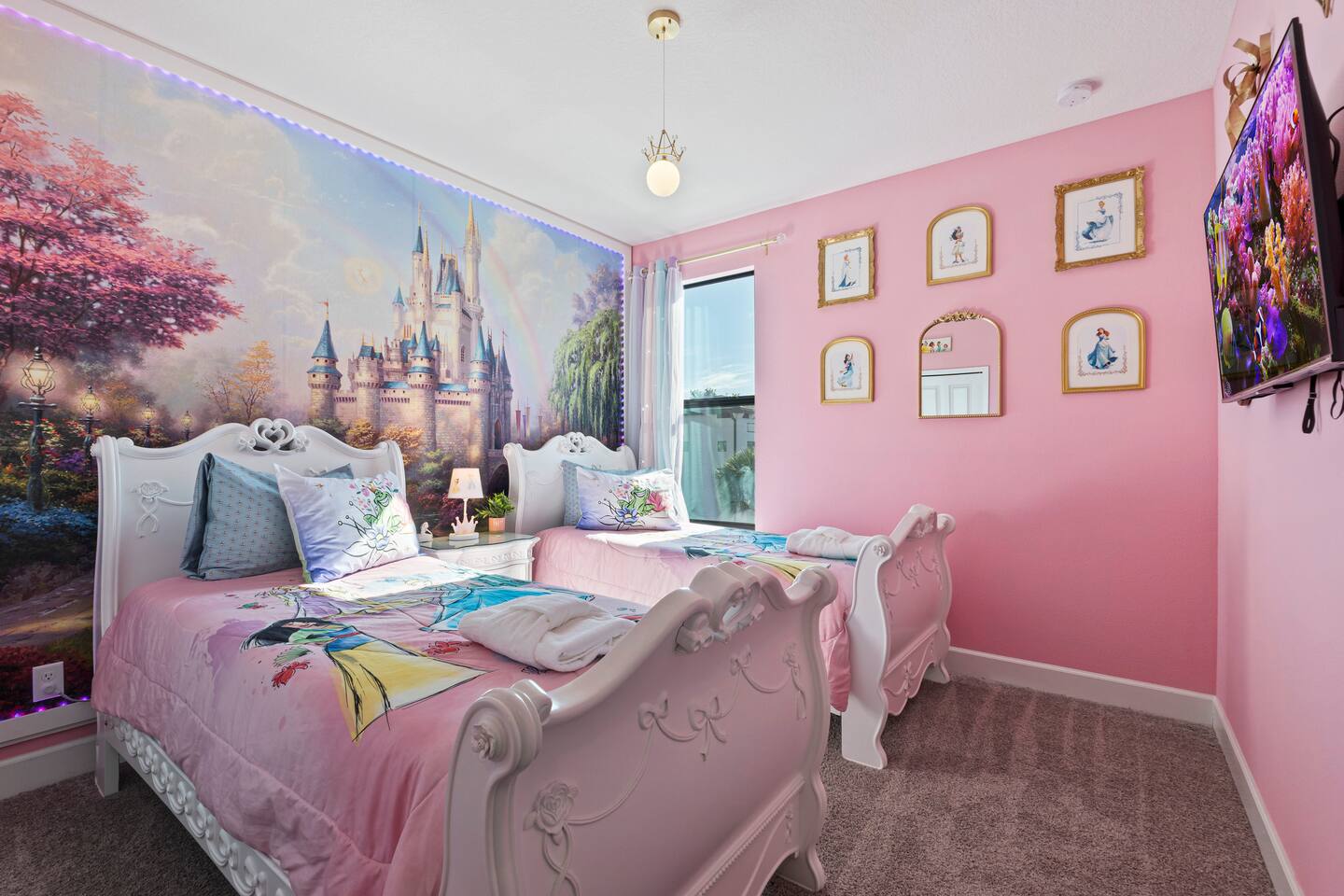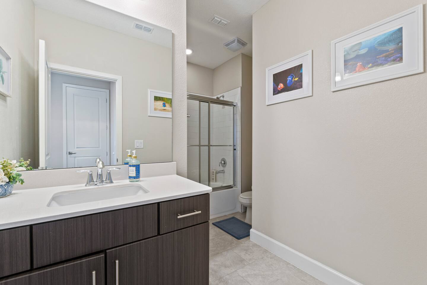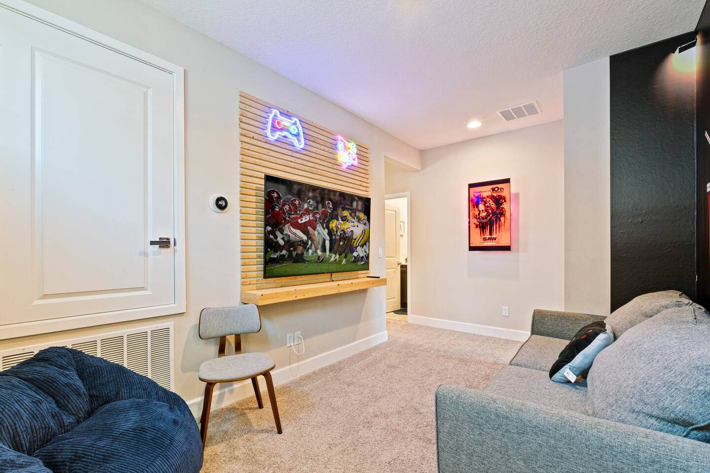 Your easy home base for park days and pool nights in a safe, gated community near Celebration. Short drive to all four Walt Disney World parks (Magic Kingdom, EPCOT, Hollywood Studios, Animal Kingdom) with quick access to Universal and SeaWorld. Inside: modern game/theater area, smart TVs in every bedroom, and fun Toy Story & Princess rooms. Outside: private plunge pool (not heated) on a west-facing patio for sunsets. Fast Wi-Fi for WFH. BBQ is available. Enjoy the resort style clubhouse with large outdoor pool, hot tub, fitness room, and billiards!